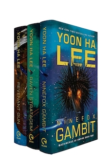 The central picture is a limited edition, signed copy of Yoon Ha Lee’s The Hexarchate from Anderida Books. This is my most significant book investment to date, and I’m in love with this set!